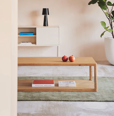 La table basse Maymai unit l'essence naturelle du chêne avec un design puriste et robuste, donnant naissance à une table à l'aspect léger et minimaliste. Elle s'intègre à tous les espaces et apporte de la personnalité grâce à ses matériaux nobles.