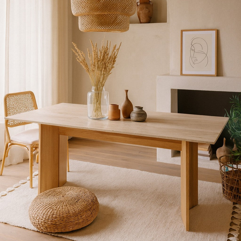Table travertin chêne massif blanchi, Mindo AM.PM