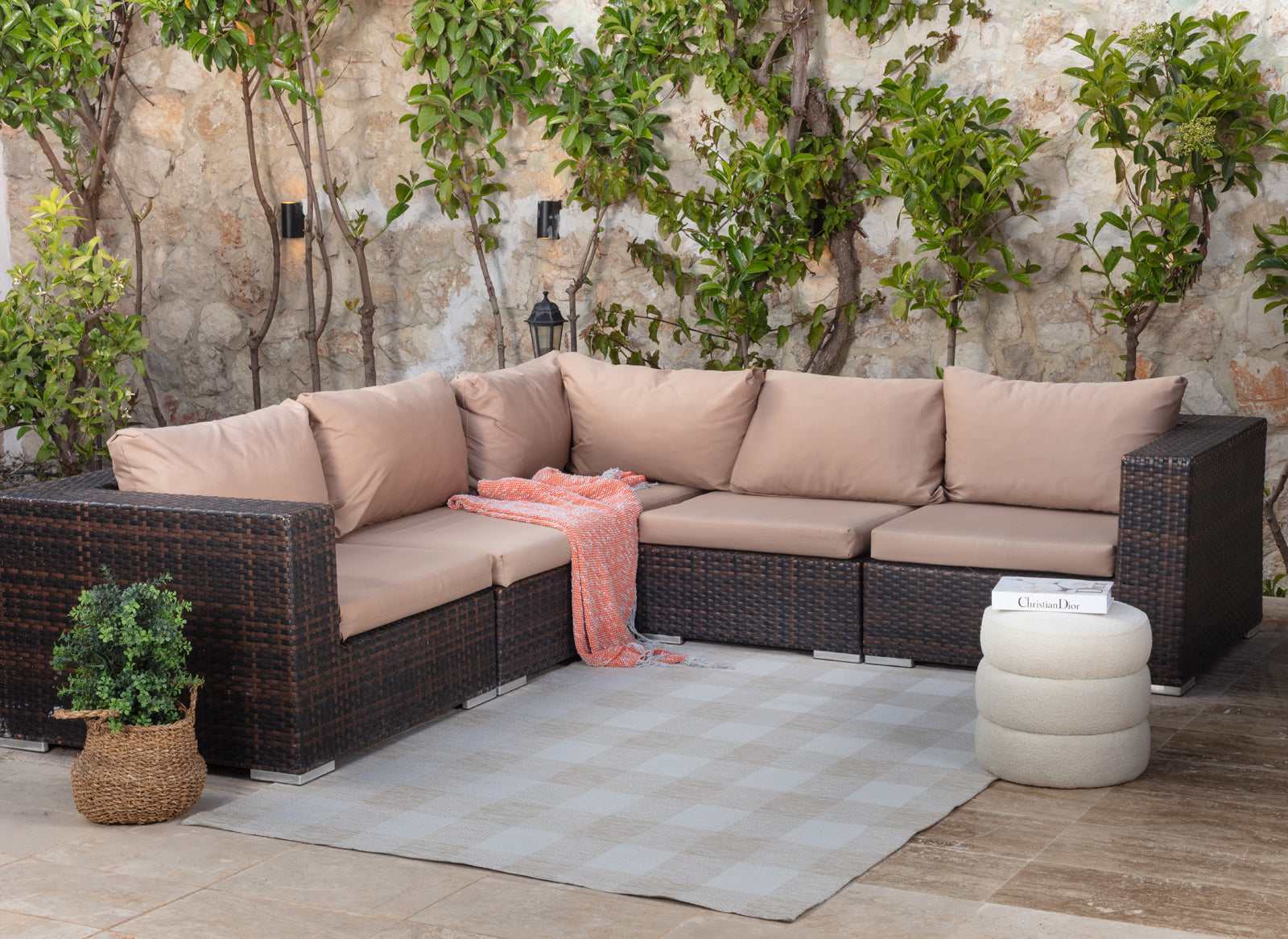 Tapis d'Extérieur/Intérieur à Carreaux Beige Clair/Ivoire Goris