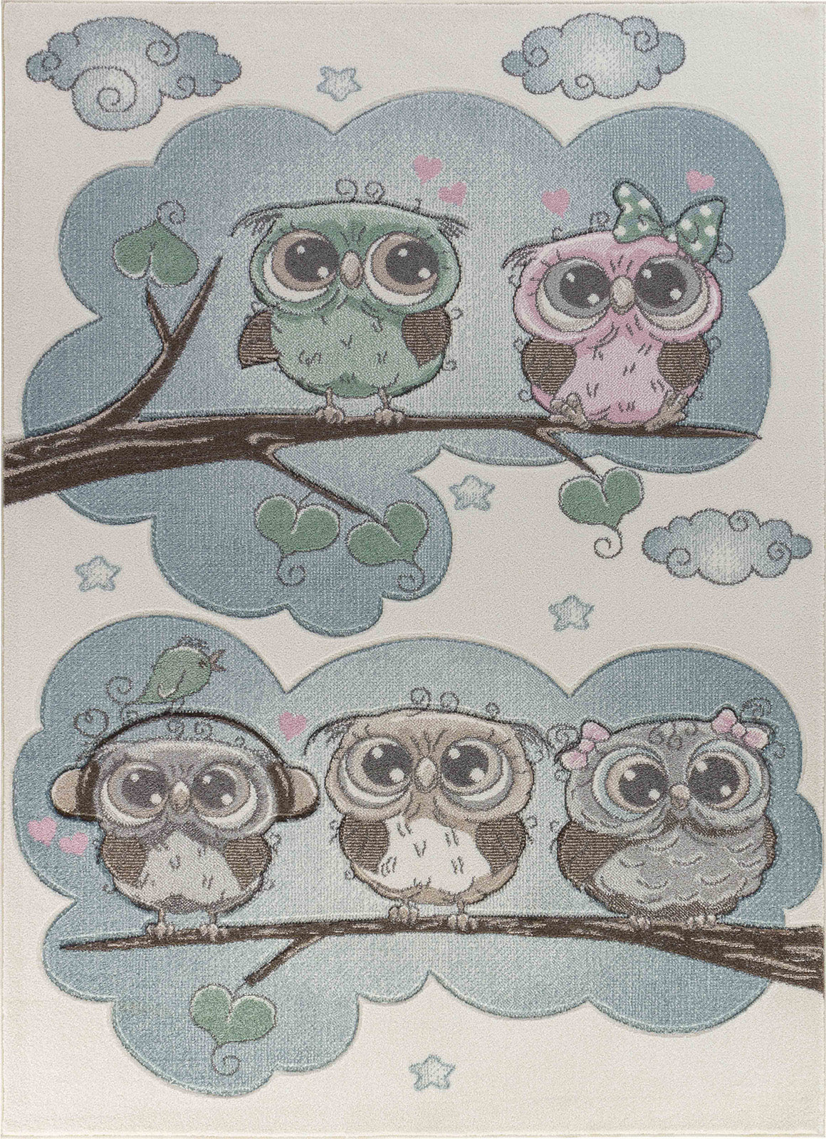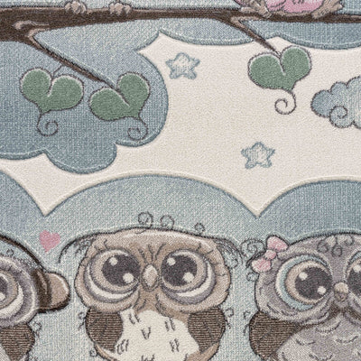 Tapis Enfant Chouettes Colorées Beige/Bleu Sleepy