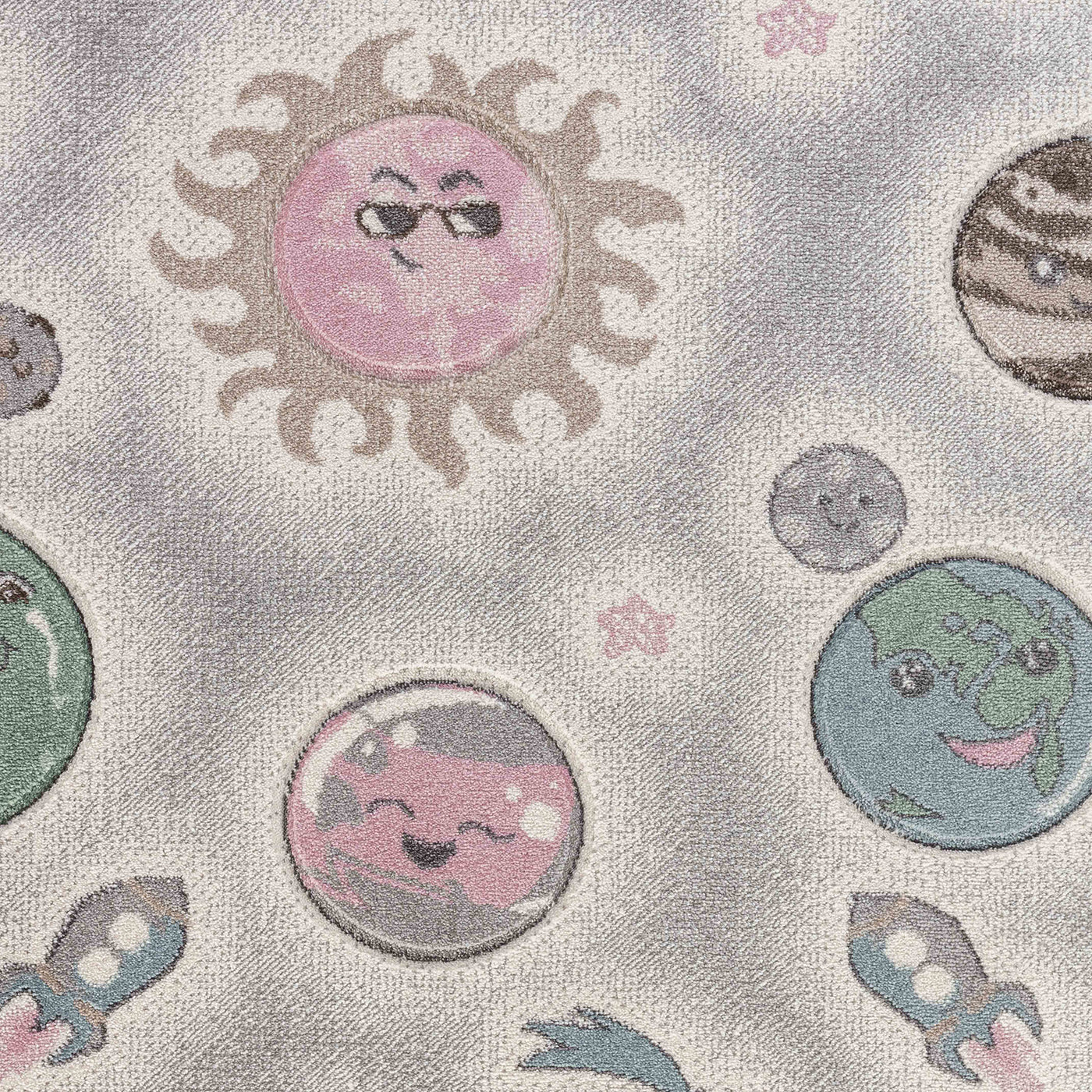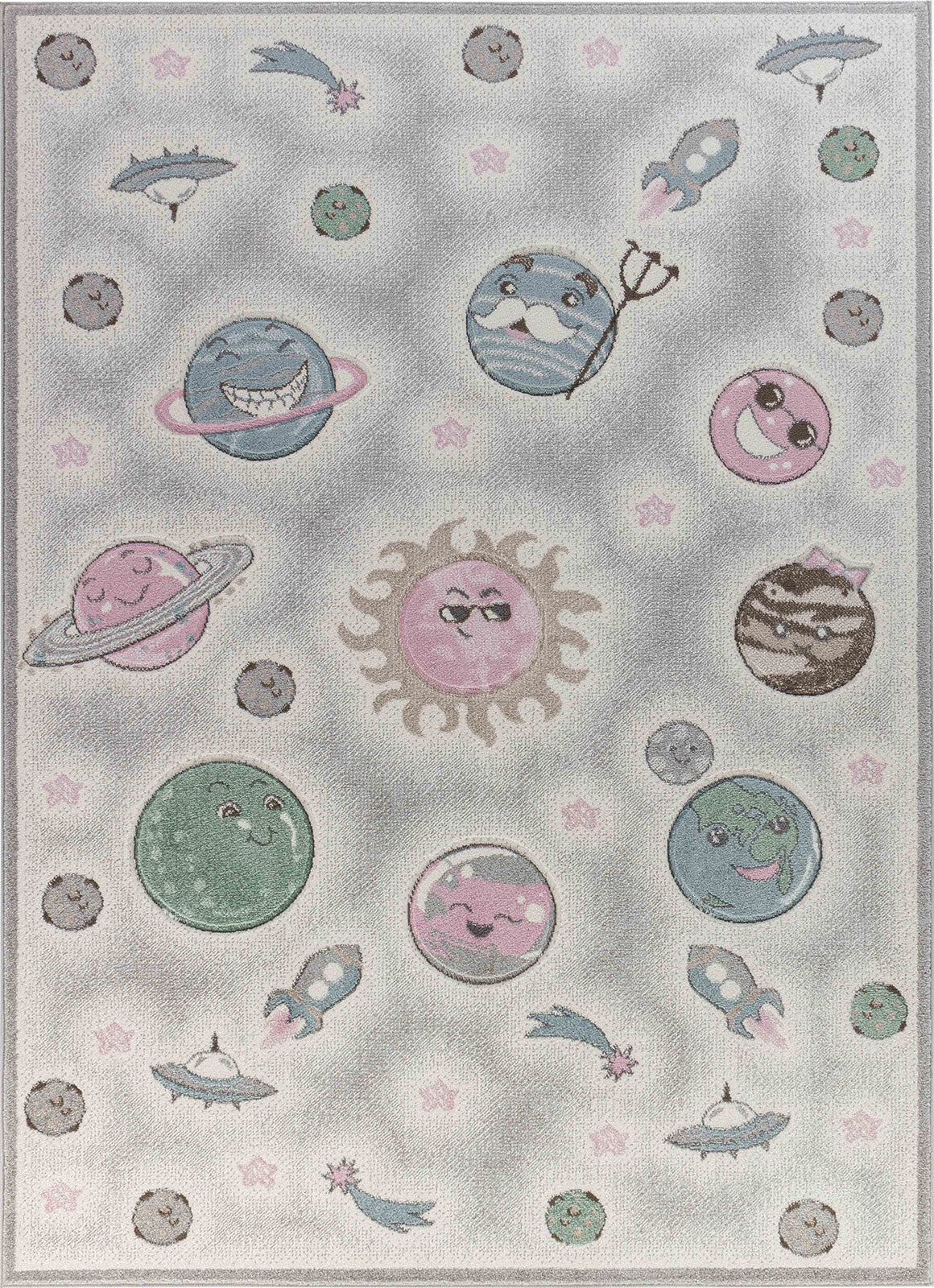 Tapis Enfant Planètes Animées Beige/Gris Milky