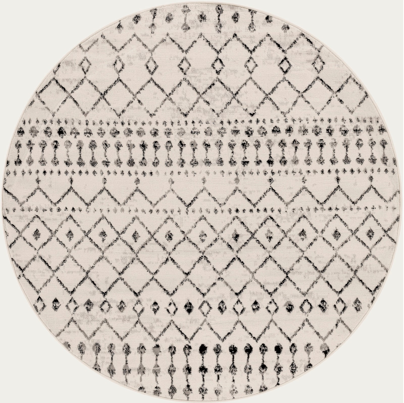 Tapis Rond Berbère Ethnique Blanc/Noir Rond Heze