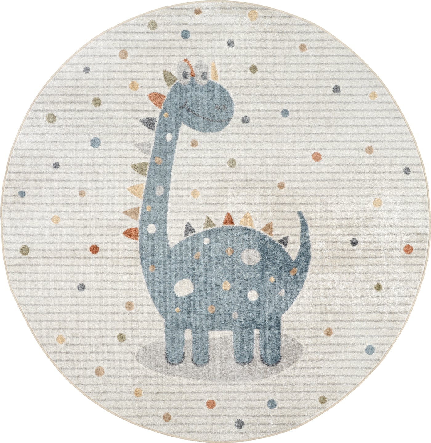 Tapis Rond Enfant Lavable en Machine Dinosaure Beige/Gris Rond Seoul