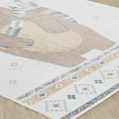 Tapis Rond Enfant Lavable en Machine Ours Indien Beige/Brun Rond Salzburg
