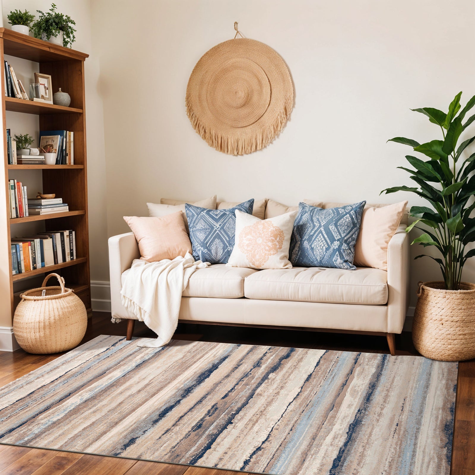 Tapis Scandinave Moderne Blanc/Gris/Bleu Dusel