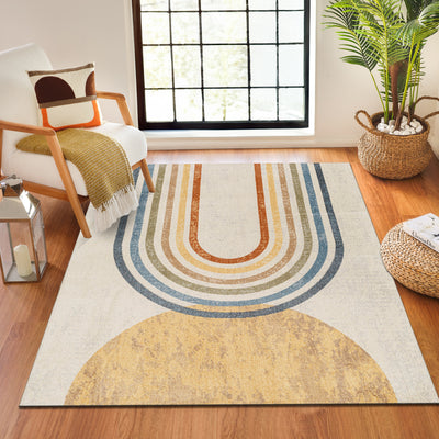 Tapis Scandinave Moderne Lavable en Machine Multicolore/Beige Ozu
