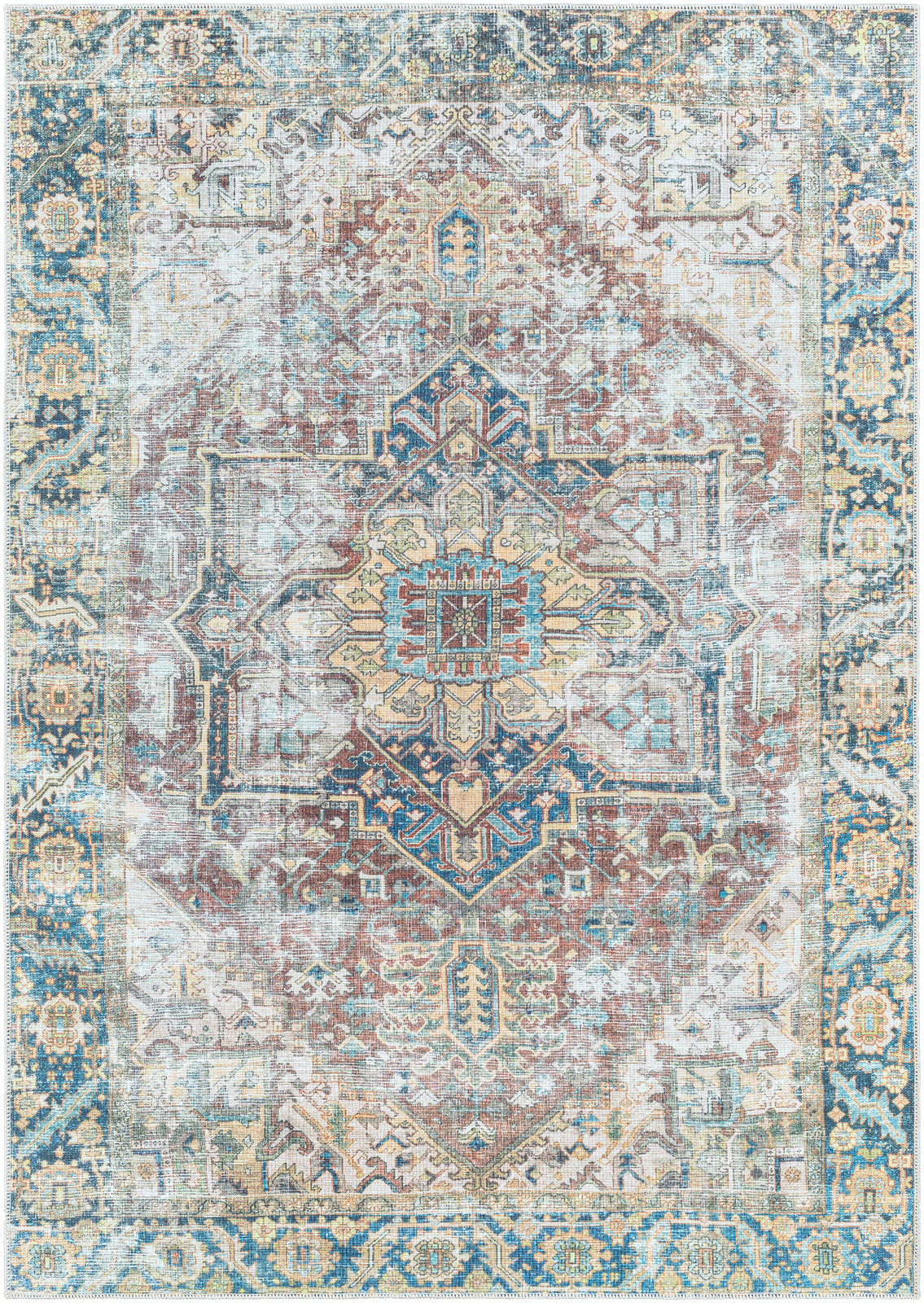 Tapis Vintage Lavable en Machine Gris/Bleu Berkeley