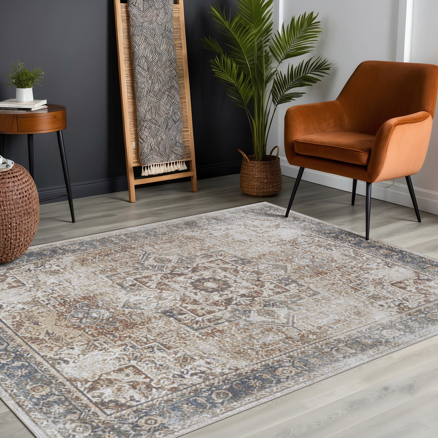 Tapis Vintage Lavable en Machine Marron/Ivoire Marlenheim