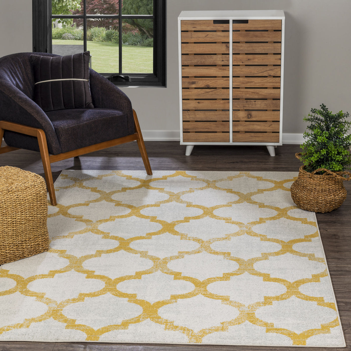 Tapis Vintage Marocain Traditionnel Blanc/Jaune Moab